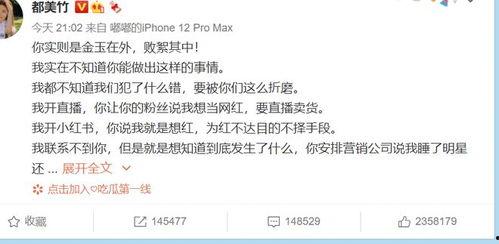 都美竹,这个名字在娱乐圈可是如雷贯耳。这次,她又在微博上掀起了一阵风波。据网友爆料,都美竹在微博上发布了一系列关于某位明星的爆料,内容涉及隐私、合约等问题,瞬间引发了网友们的广泛关注。